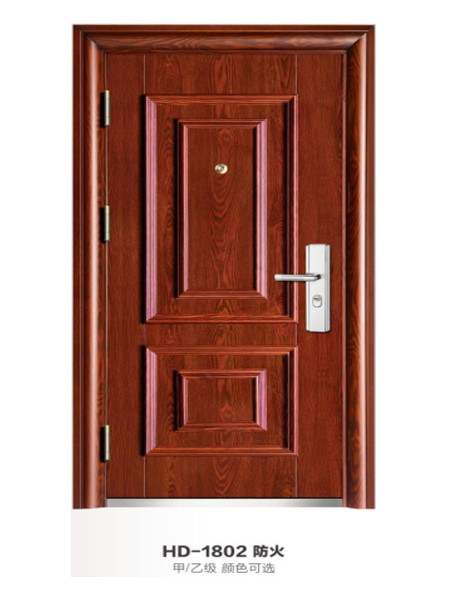長沙鴻都門業(yè)鋼質(zhì)防火入戶門,因其牢固的結(jié)構(gòu)和簡潔的造型,廣泛適用于各種建筑的公共防火區(qū)域。門框采用優(yōu)質(zhì)鍍鋅鋼帶經(jīng)專用生產(chǎn)線一次性滾軋成型, 鑲嵌防火膨脹條,可選配防火密封條,關(guān)閉無撞擊聲,橫梁、豎框采用90°角電焊拼接,大尺寸門框可由螺絲拼接組裝。門扇采用優(yōu)質(zhì)鍍鋅鋼板經(jīng)折彎機精確折彎,內(nèi)部填充綠色環(huán)保的珍珠巖板,防火,隔熱,隔音,采用表面無焊點工藝,外表平整。